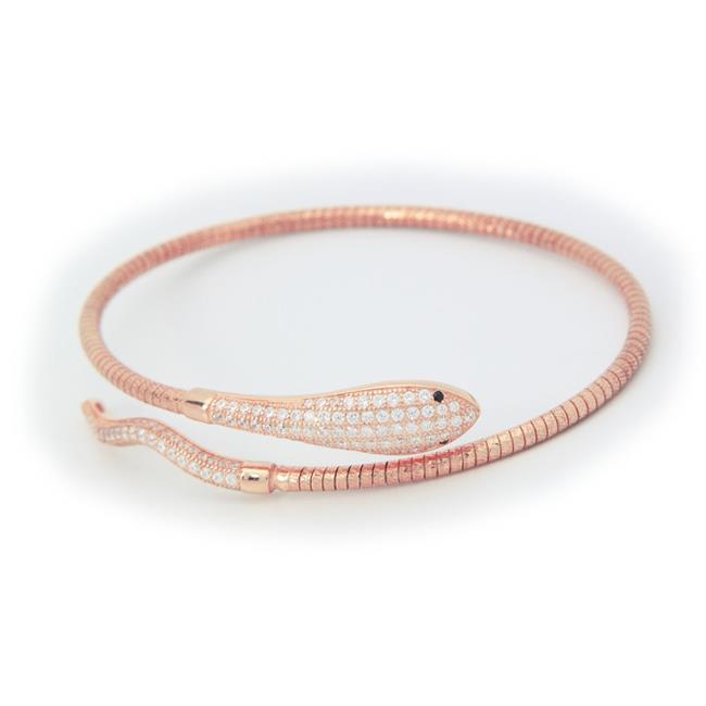Fronay 122128P Sparkling CZ Cleopatra Cobra Snake Bracelet in Rose Gold Sterling Silver
