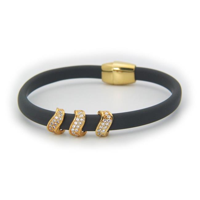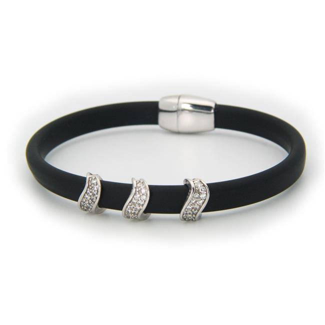 Fronay 122129B Sterling Silver Sparkling Waves Black Bracelet, Magnetic Clasp