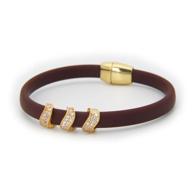 Fronay 122129C Sterling Silver Sparkling Waves Brown Bracelet, Magnetic Clasp