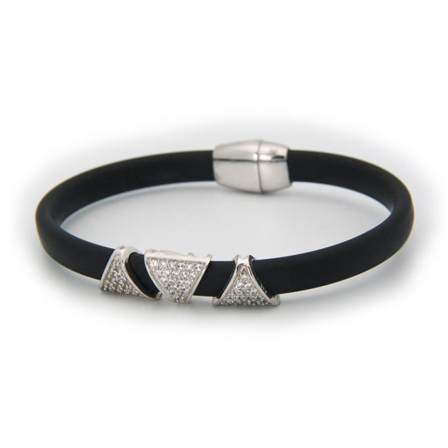 Fronay 122130B Sterling Silver Sparkling Pyramids Black Bracelet with Magnetic Clasp