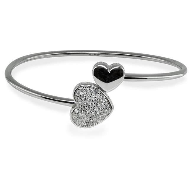 Fronay 122137 Sparkling Cz Heart Cuff Bangle in Sterling Silver