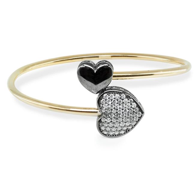 Fronay 122137B Sparkling Cz Heart Cuff Bangle in Gunmetal Sterling Silver