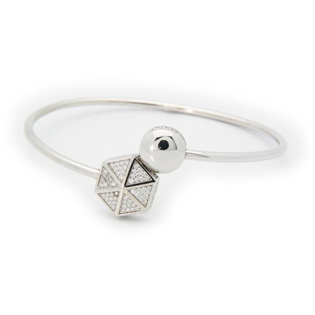 Fronay 122138 Sparkling Cz Hexagon Cuff Bangle in Sterling Silver