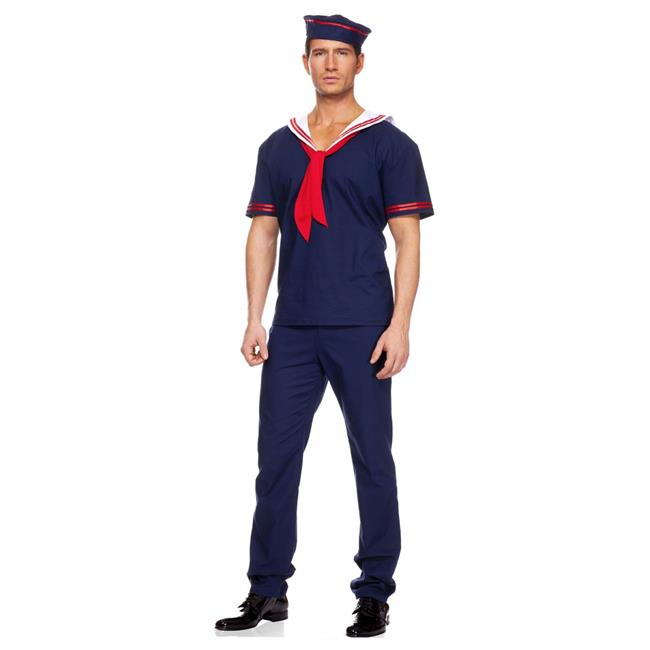 Music Legs 76007-L 3 Piece Ahoy Matie Sailors Collared Shirt with Matching Pants & Hat - Large
