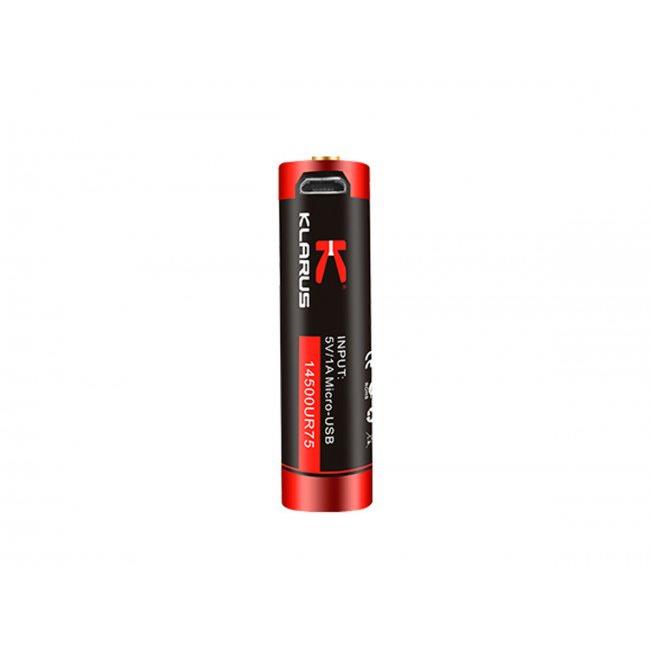 Klarus KLARUS-14500UR75 750mAh 3.7V Protected Lithium Ion Button Top Battery with Micro USB Charging Port