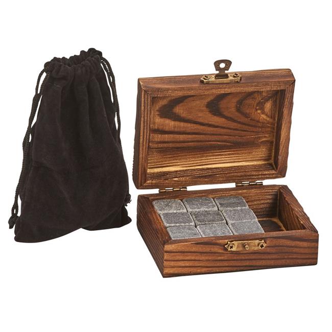 Creative Gifts 069406 Wood Box with 9 Whiskey Stones & Pouch