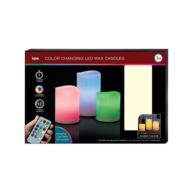 Inglow 9464645 Vanilla Pillar Color Changing Flameless LED Candle Set with Remote 3 x 6.81 in