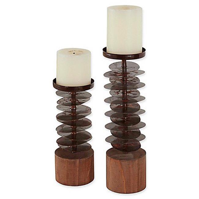 Danya B HG16200 Eucalyptus Metal & Wood Candle Holders - Set of 2
