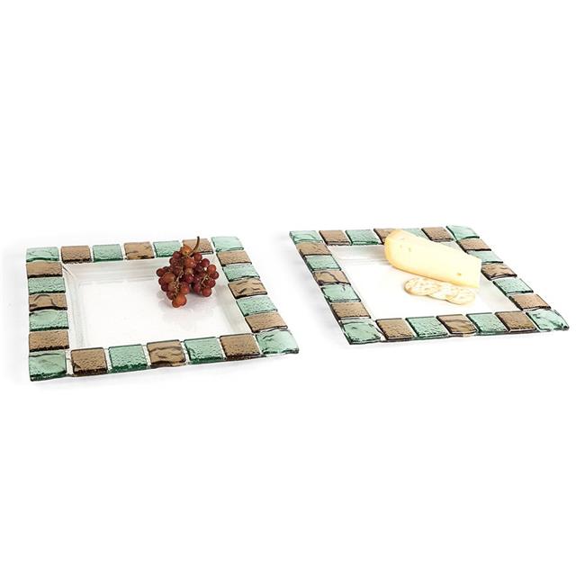 Danya B FW-C30714 14 x 14 in. Rimmed Square Glass Platter with Colored Glass Tiles