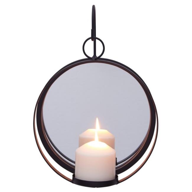 Danya B SE1994 Round Wrought Iron Pillar Candle Sconce with Mirror Rustic Metal Hanging Wall Candleholder - Black & Gray