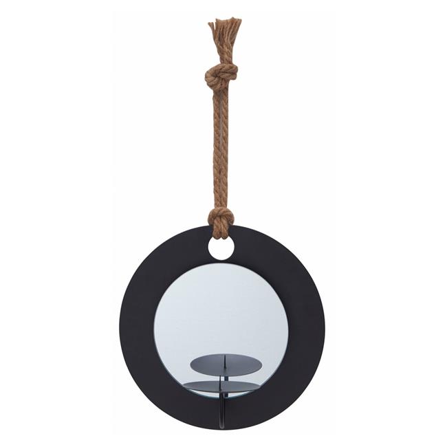 Danya B SE2168 Decorative Round Rustic Pillar Candle Sconce with Rope & Mirror Wall Accent - Gray & Brown