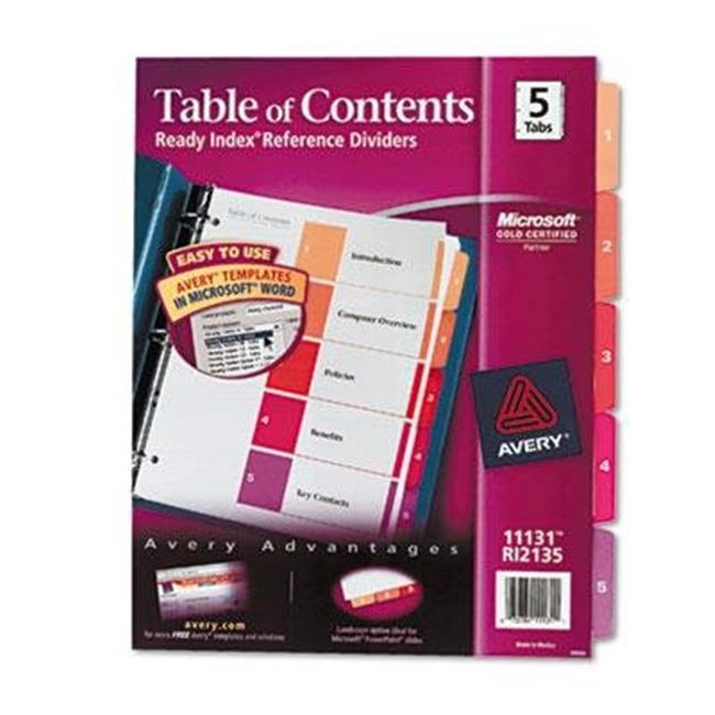 Merchandise 65031906 Avery Ready Index Table of Contents Dividers, 5-Tab Set