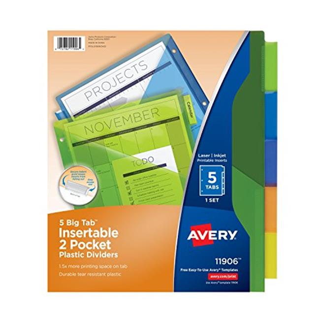 Merchandise 65034204 Avery Big Tab Insertable Plastic Dividers with Pockets, 5 Multicolor Tabs