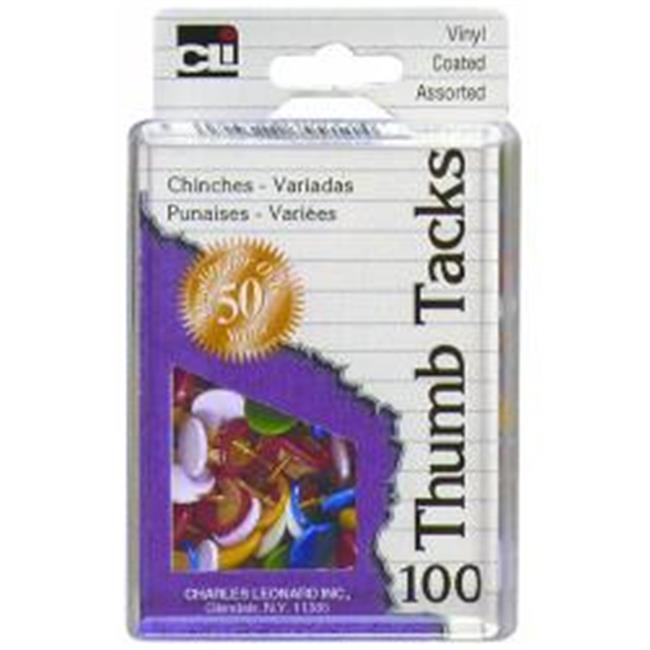 Merchandise 65008068 Charles Leonard Inc Vinyl Coated Thumb Tacks Assorted Colors, 100 Count