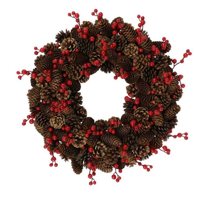 Teters 9473604 20 in. Brown Pinecone & Berry Wreath- pack of 4