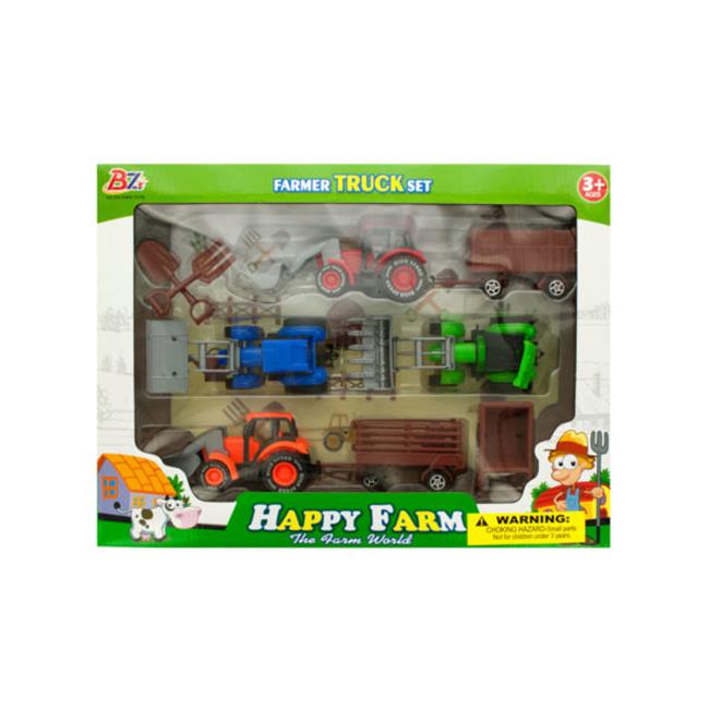 Kole Imports GH382-6 Farm Tractor Truck & Trailer Set - Pack of 6