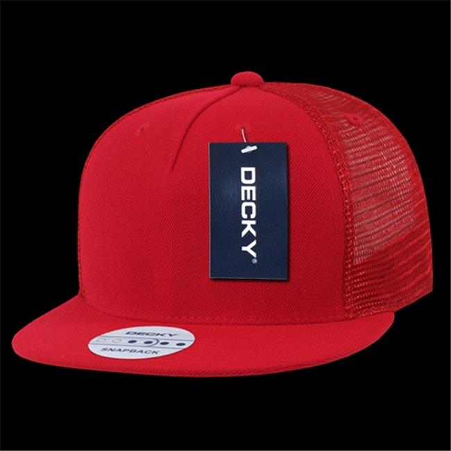 Decky 1063-RED 5 Panel Flat Bill Trucker Hats, Red