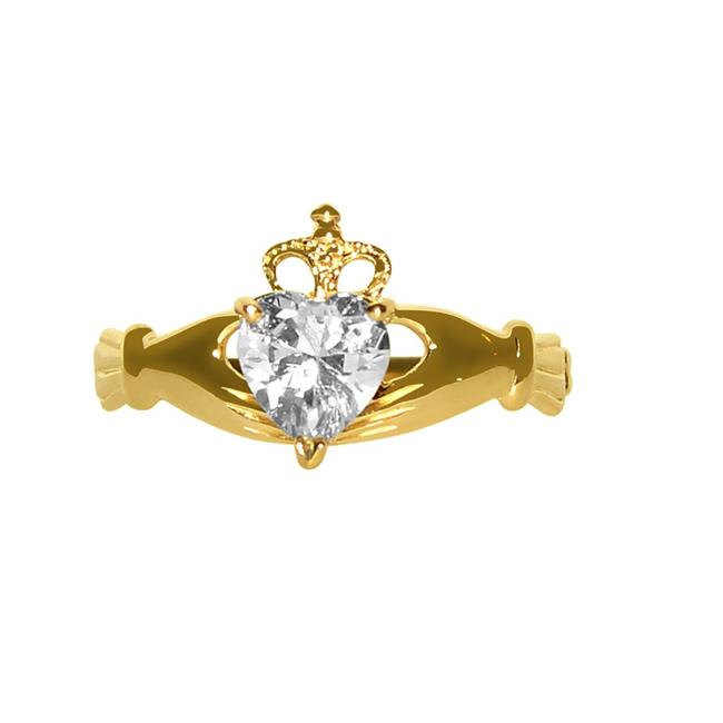Precious Stars DM2133RG-s7 14K Yellow Gold Heart Shape Cubic Zirconia Claddagh Ring - Size 7