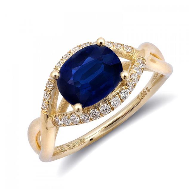 Precious Stars JJ1214-sz7 14K Yellow Gold 1.79 Carat TGW Blue Sapphire & White Diamond Ring - Size 7