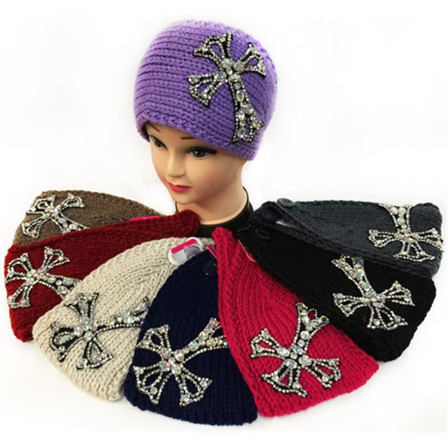 No 1931277 Large Rhinestone Cross Design Knitted Headband - Case of 24