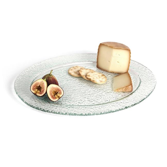 Danya B FW-A131 16 in. Rimmed Round Textured Glass Platter Set of 2 - Clear