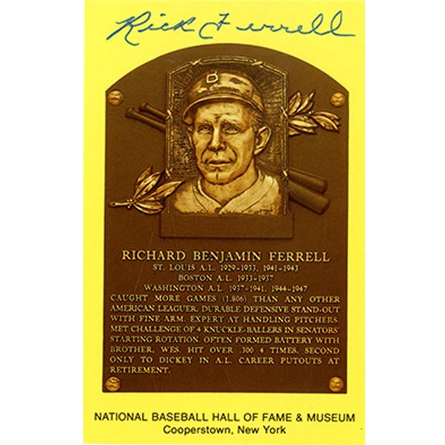 Steiner Sports FERRCDS000000 Rick Ferrell Signed Yellow Baseball Hall of Fame Plaque Card - JSA Auth