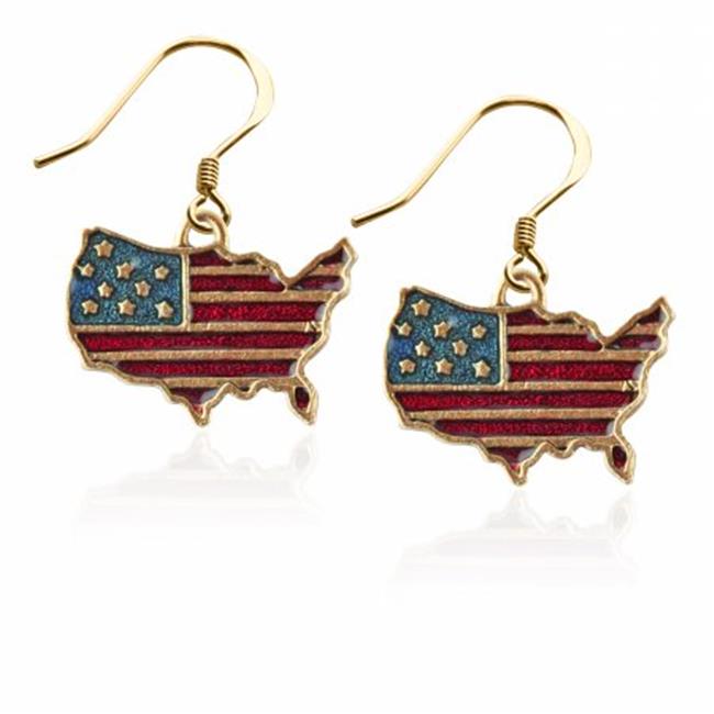 Whimsical Gifts 2582G-ER Stars & Stripes Flag Charm Earrings in Gold