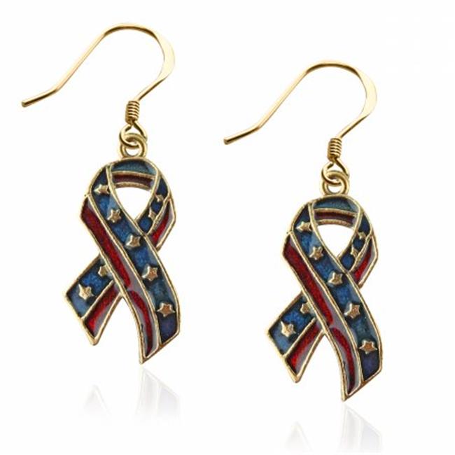 Whimsical Gifts 2580G-ER Stars & Stripes Ribbon Charm Earrings in Gold