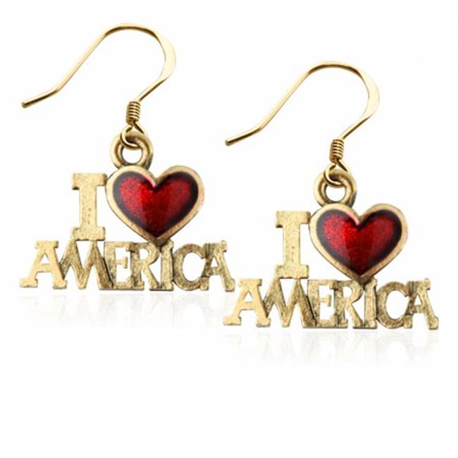 Whimsical Gifts 2585G-ER I Love America Charm Earrings in Gold