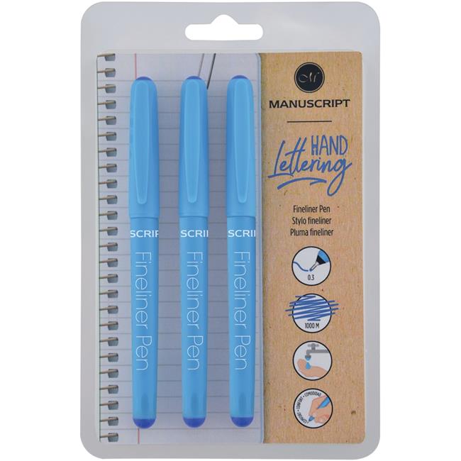 Manuscript Pen T01133BE Fineliner Pens - Blue Ink, Pack of 3
