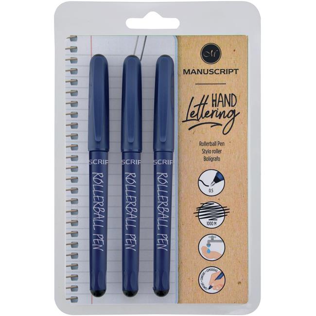 Manuscript Pen T01113BE Rollerball Pen - Blue Ink, Pack of 3