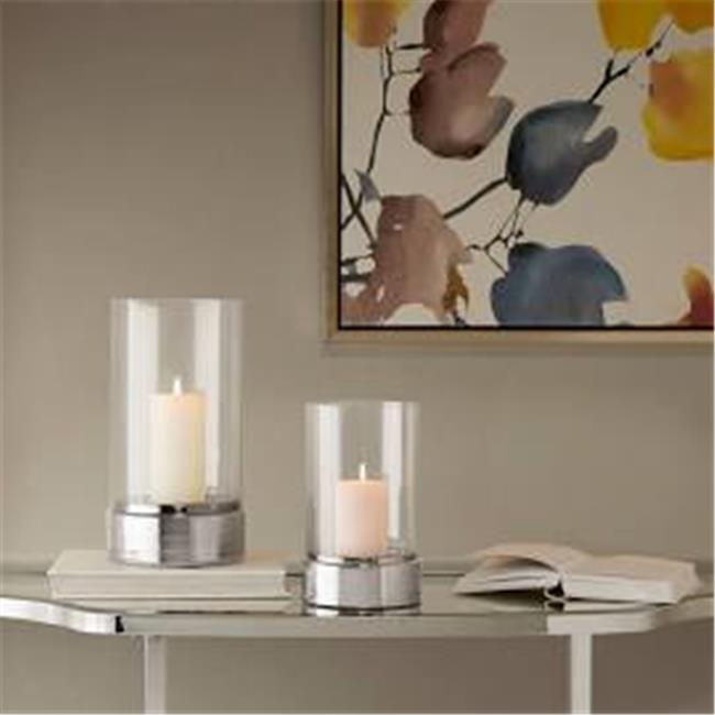 Madison Park MPS164-317 Medium Ceramic Candle Holder, Clear & Grey
