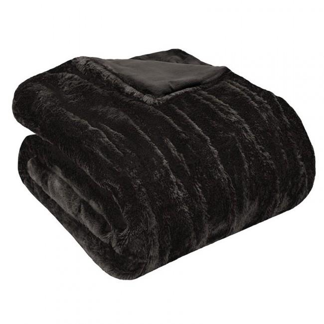 Madison Park MP50-1085 50 x 70 in. Oversized Ruched Fur Throw - Black