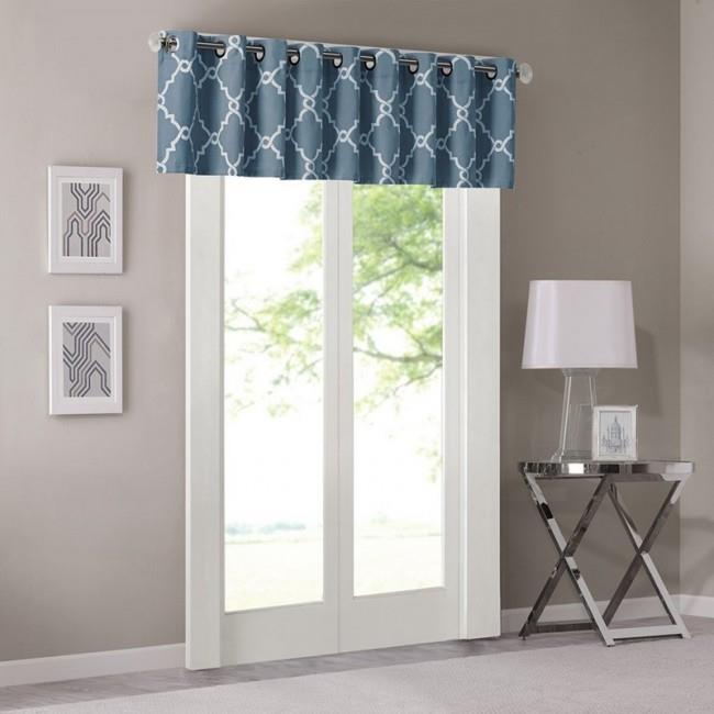 Madison Park MP41-2027 Fretwork Print Valance, Blue
