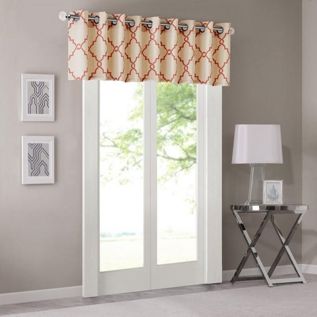 Madison Park MP41-2030 Fretwork Print Valance, Beige & Spice