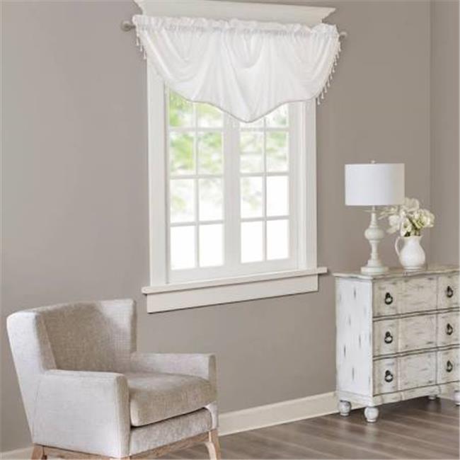 Madison Park MP41-5183 86 x 33 in. Faux Silk Beaded Trim Imperial Valance, White