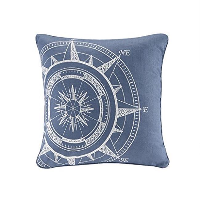 Harbor House HH30-1741 20 x 20 in. Compass Linen Embroidery Square Decorative Pillow - Blue