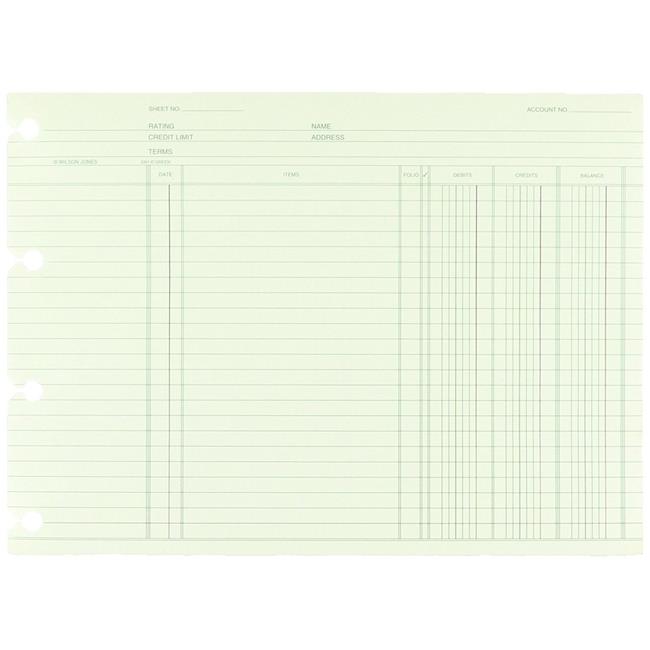 Wilson Jones WGN1DA Green End-Balance Ledger Forms Both Sides, Pack of 500