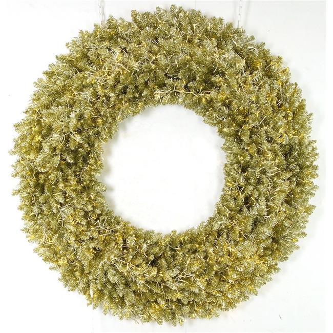 Autograph Foliages C-180894 48 in. Sparkling Champagne Wreath with 3 mm LED Cluster Lights, Gold
