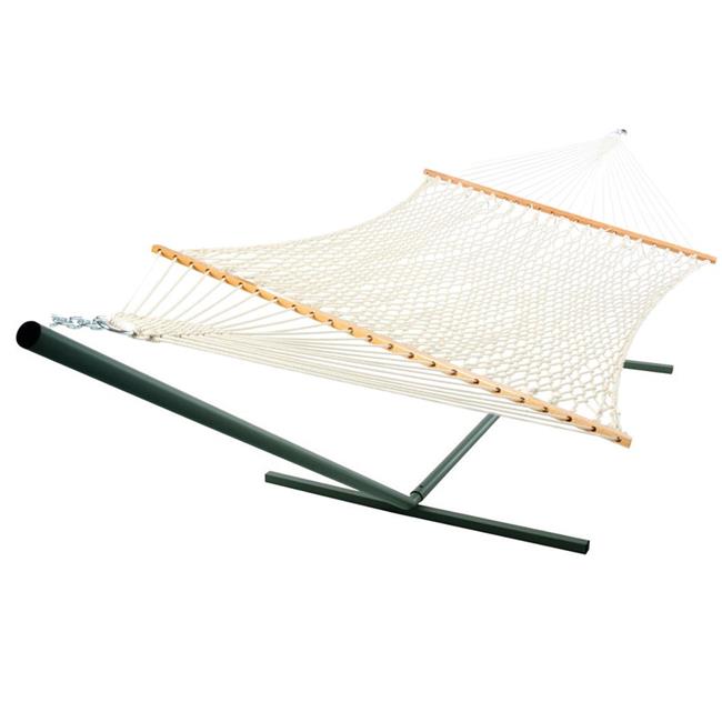 Castaway Hammocks 405400000307 Deluxe Rope Hammock with Green Tribeam Stand