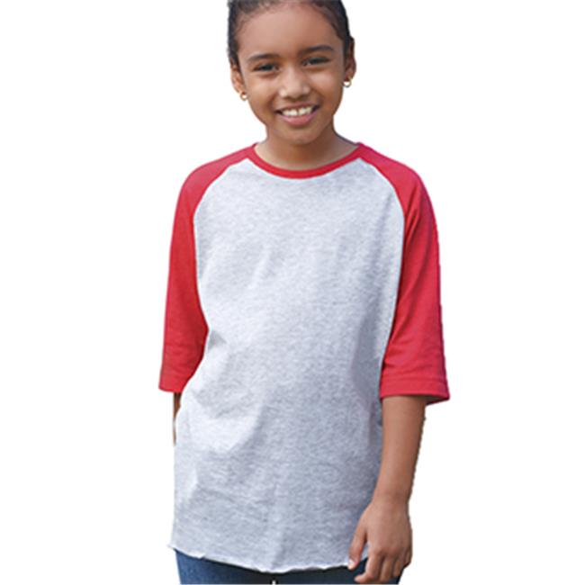 LAT Sportswear 6130 Youth 3 By 4 Sleeve Baseball T-Shirt - Vintage Heather & Vintage Red, Medium