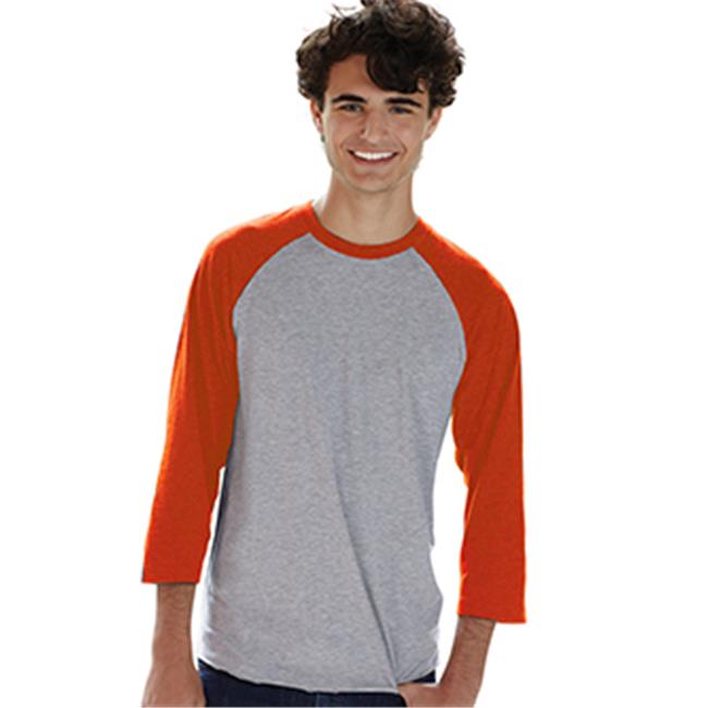 LAT Sportswear 6930 Adult 3 By 4 Sleeve Baseball T-Shirt - Vintage Heather & Vintage Orange, Extra Large