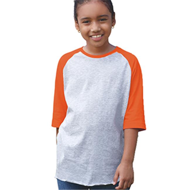 LAT Sportswear 6130 Youth 3 By 4 Sleeve Baseball T-Shirt - Vintage Heather & Vintage Orange, Extra Large