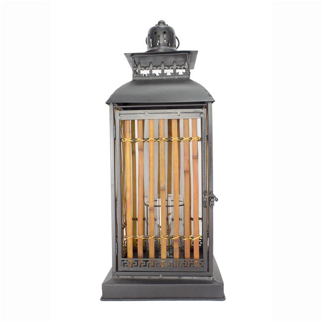 Heather Ann Creations W70194 28 in. Clayton Metal & Bamboo Lantern, Black & Natural
