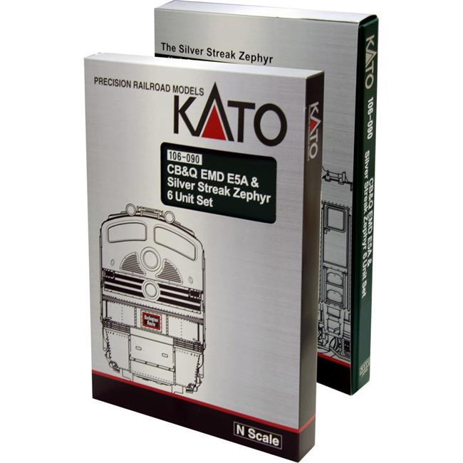 Kato KAT106090DCC N EMD E5A & Silver Streak Zephyr Box 6 Unit Train Set, Chicago, Burlington & Quincy
