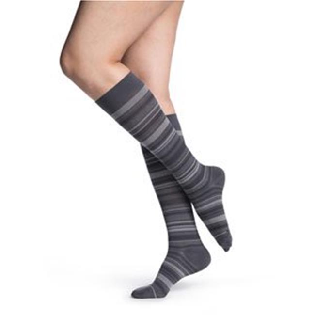 Sigvaris Sigvaris-143CA07 Microfiber Shades Calf High Socks, Mini Stripe Graphite - Size A