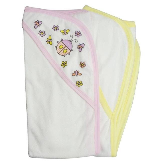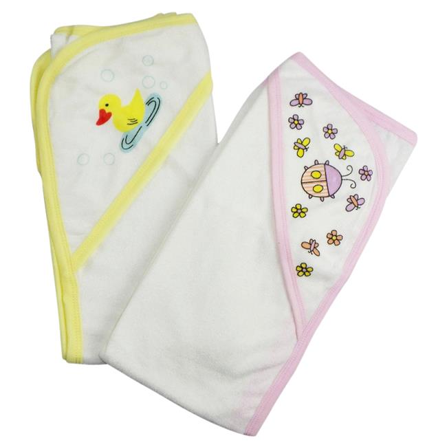 Bambini 021-Yellow-021B-Pink Infant Hooded Bath Towel, Pink & White - Pack of 2