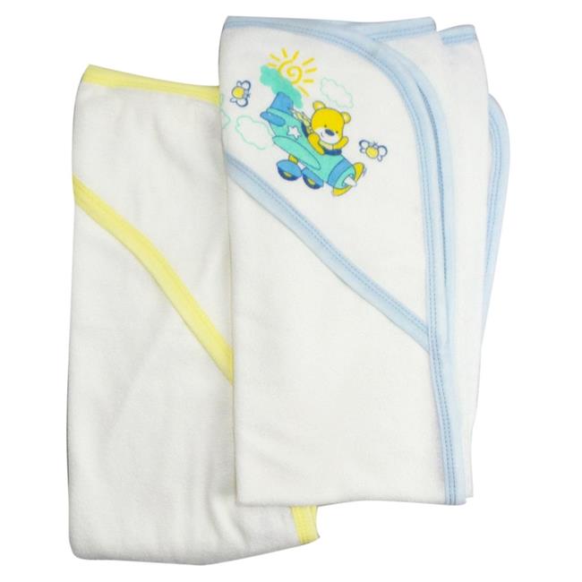 Bambini 021-Blue-021B-Yellow Infant Hooded Bath Towel, White - Pack of 2