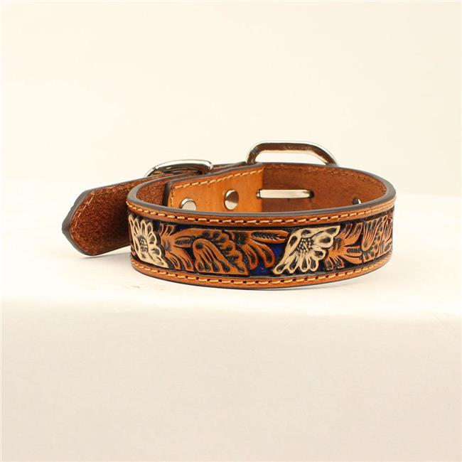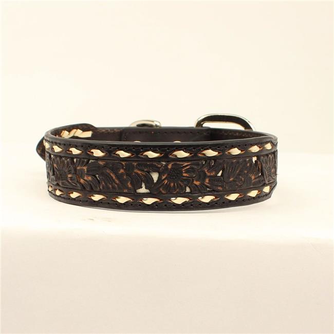 DBL Barrel 9308202-S 0.87 in. Floral Embossing Nailheads Dog Collar, Brown - Small
