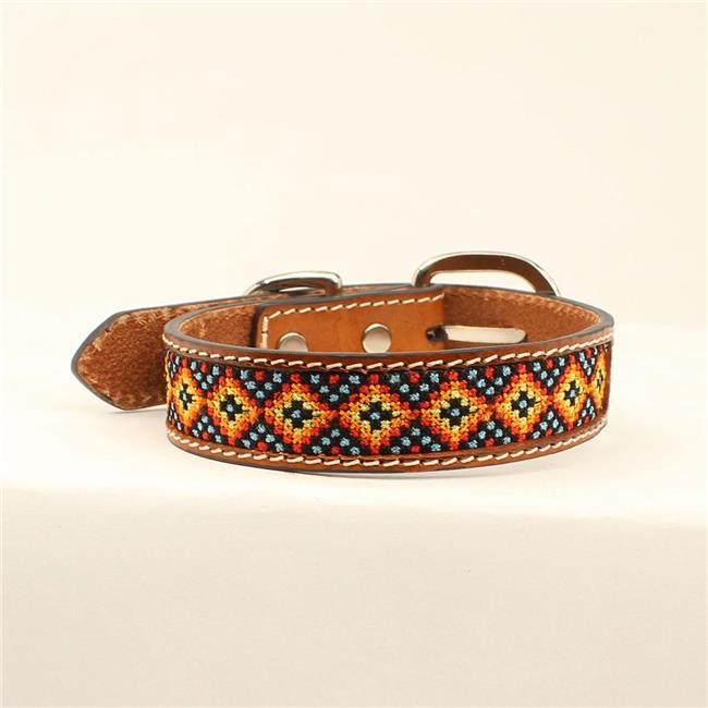 DBL Barrel 9308108-S 0.87 in. Stitched Multi Colored Ribbon Inlay Dog Collar, Tan - Small